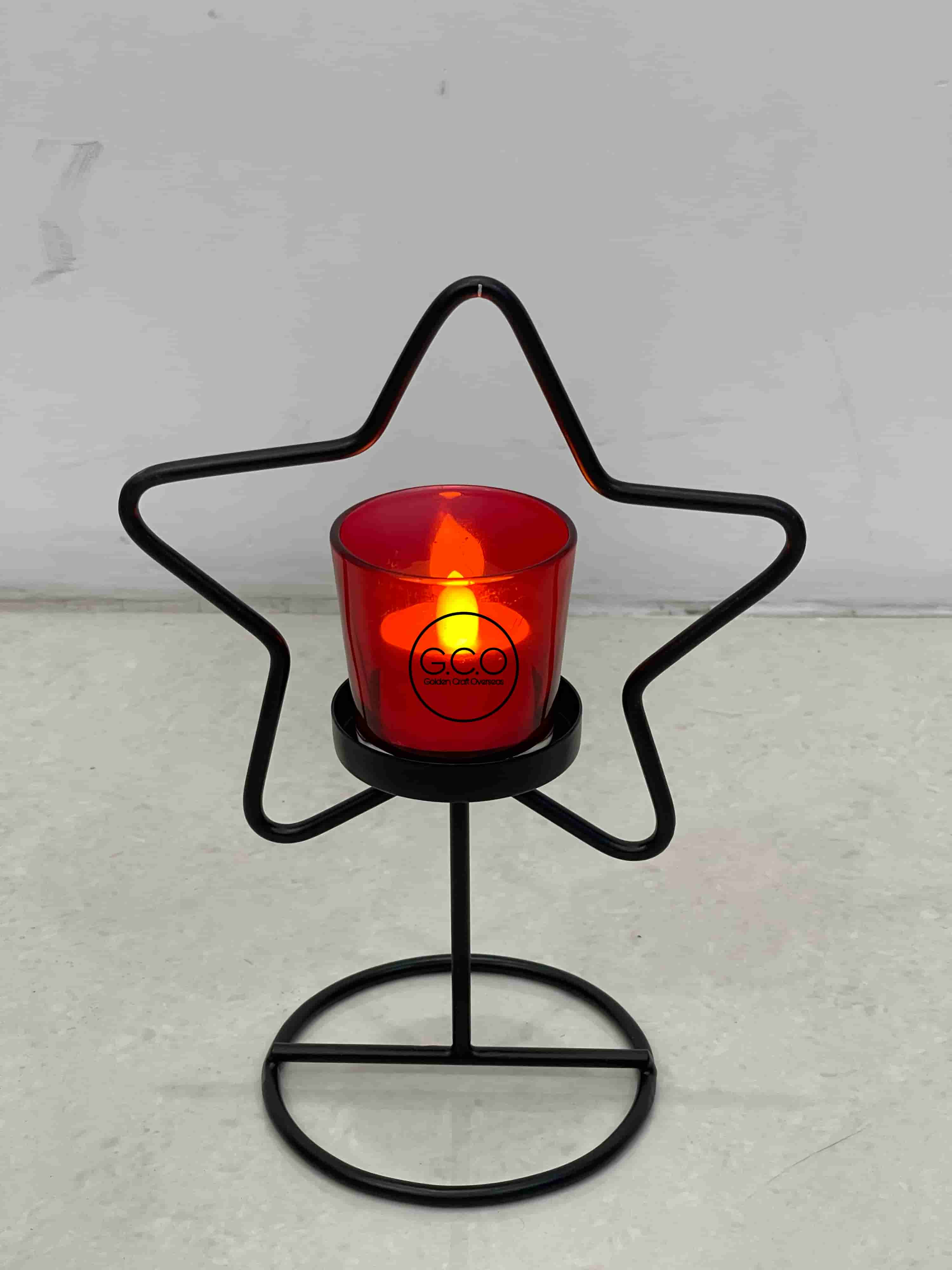 GCO Star Tea Light Stand in iron with Glass for decorations