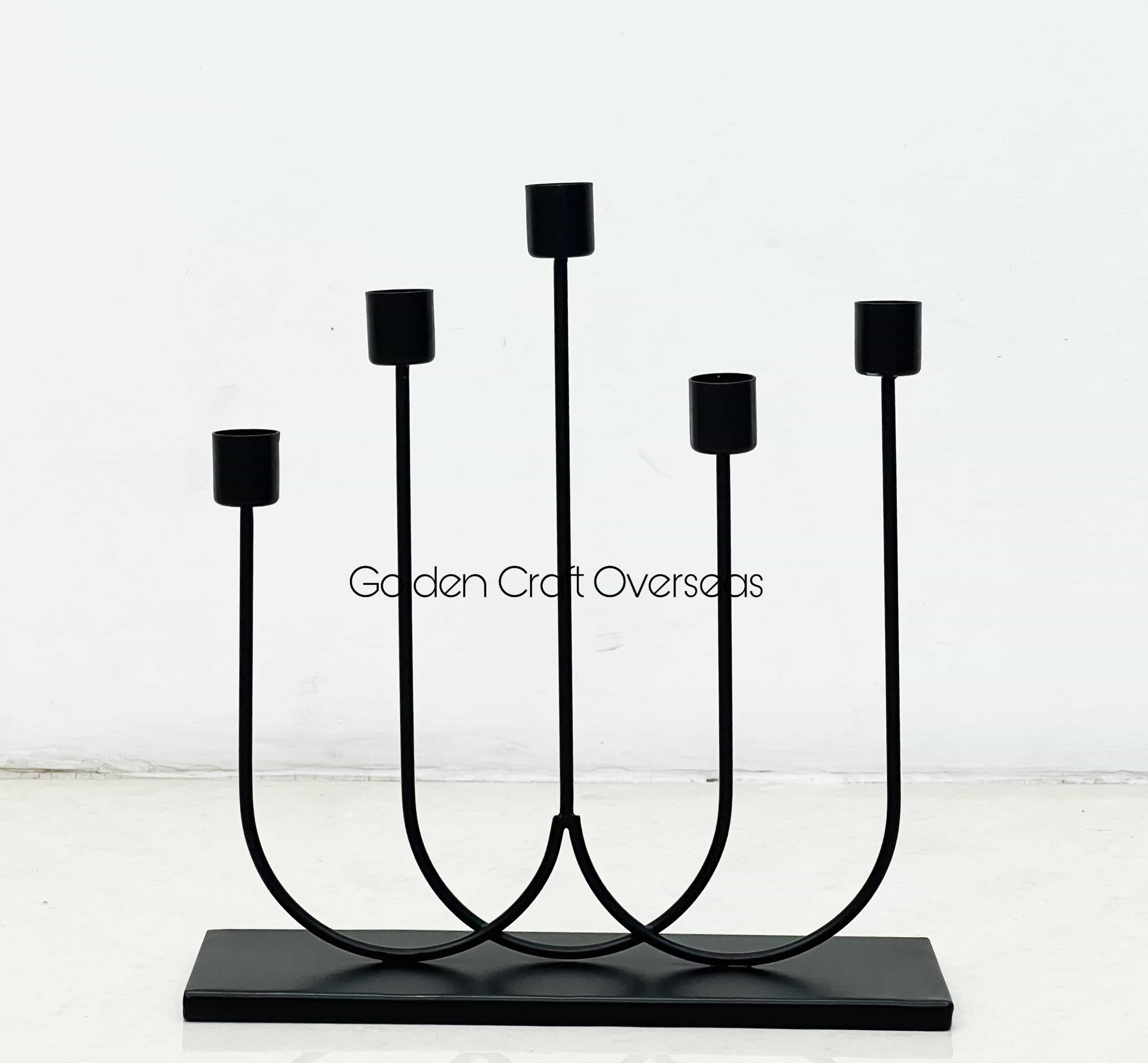 GCO Matte Black Candle Stand in iron with five arms for candles