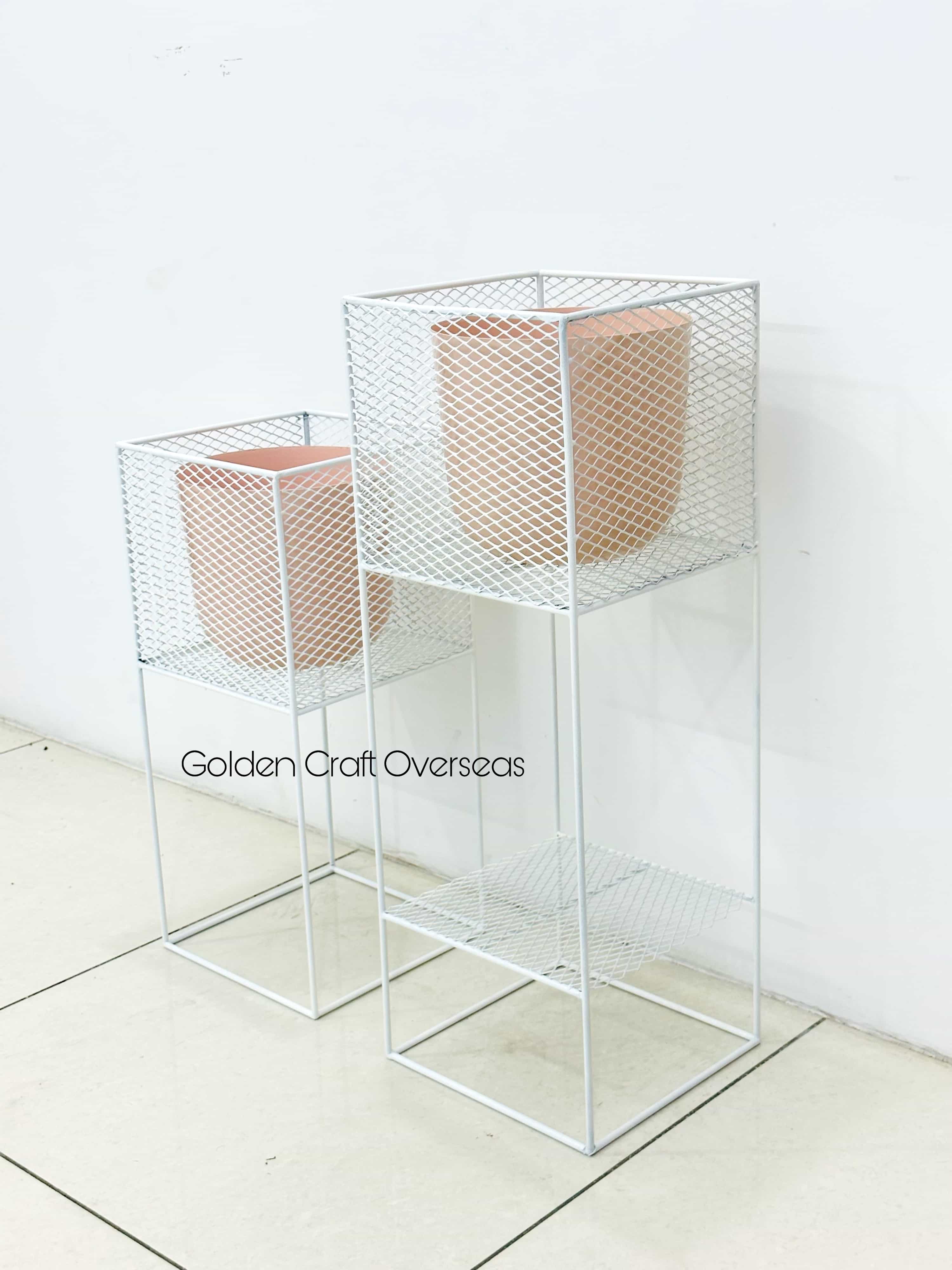 Meshable Planter Stands with baby pink pots in iron with Powder coated finish