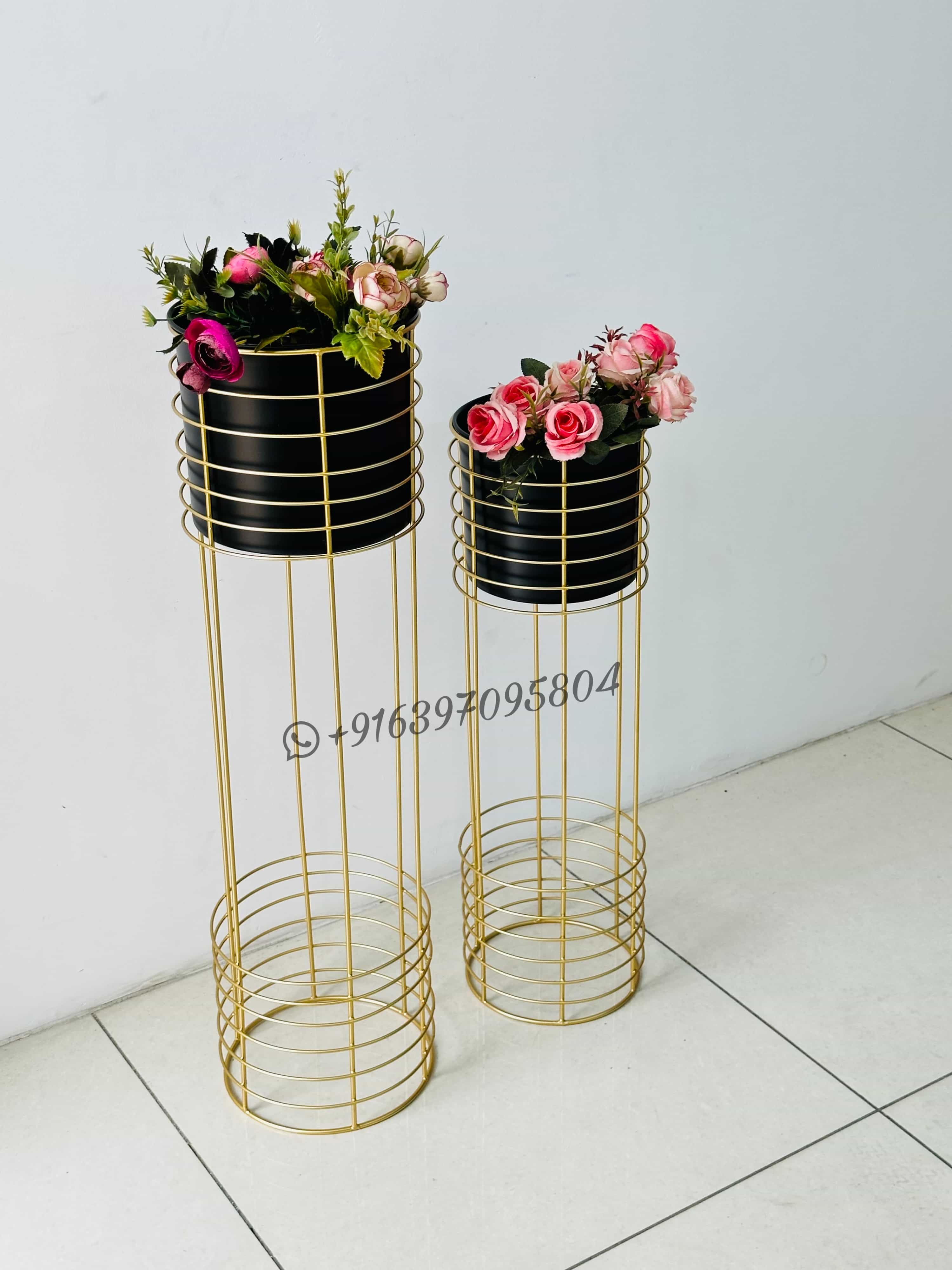 Premium Quality Planter Set with gold plated pots and golden powder coated stands