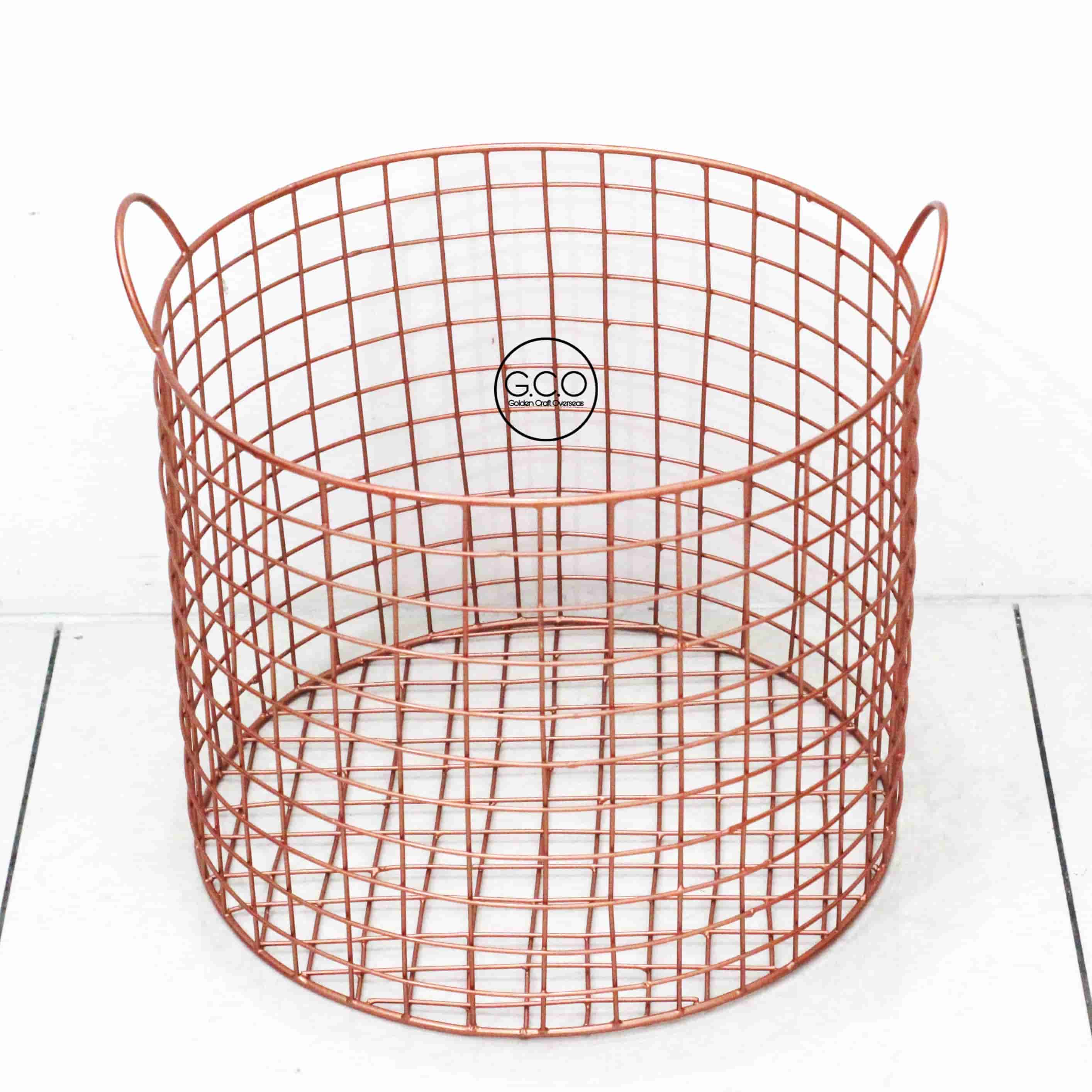 Rose Gold Laundry cum storage basket in iron with powder coated finish