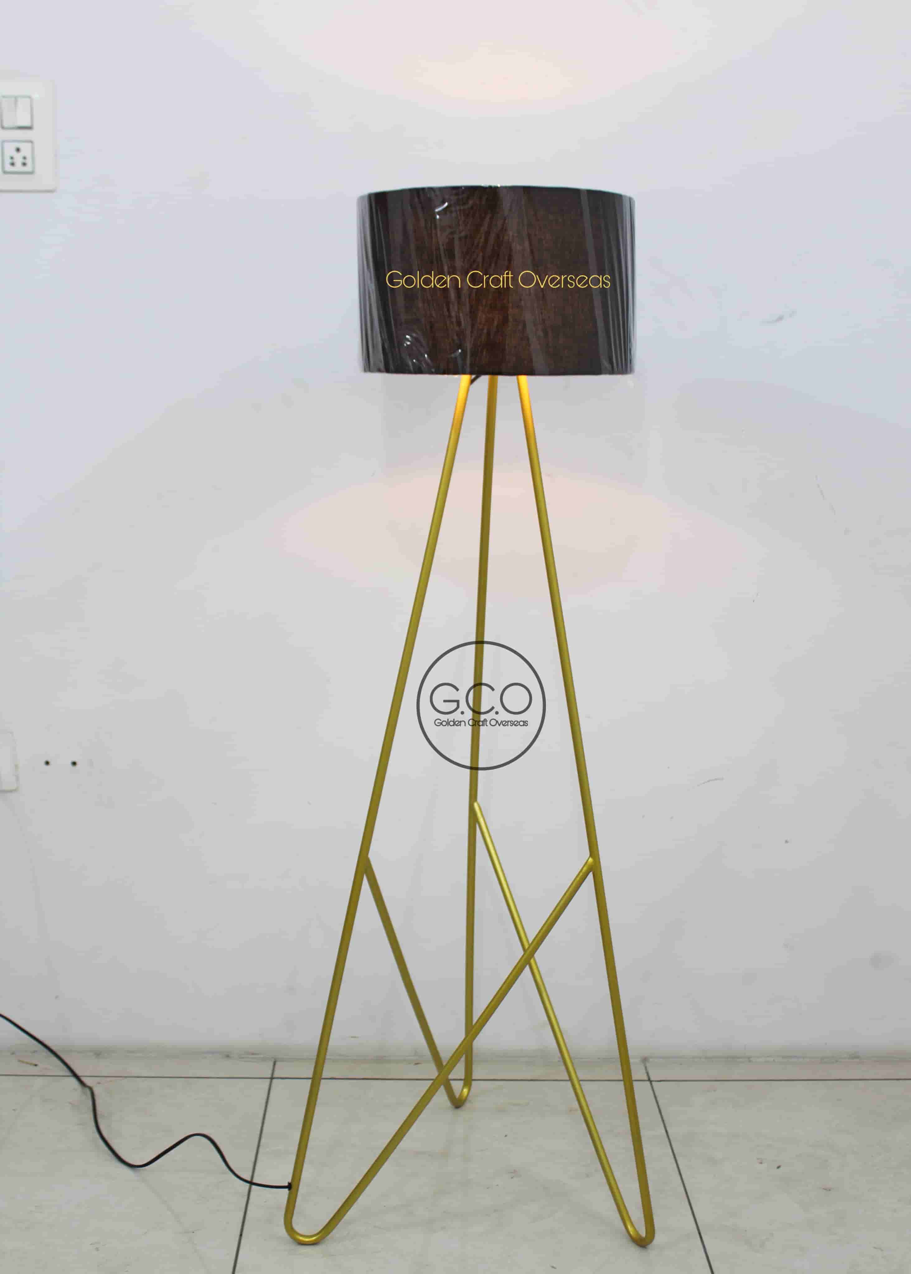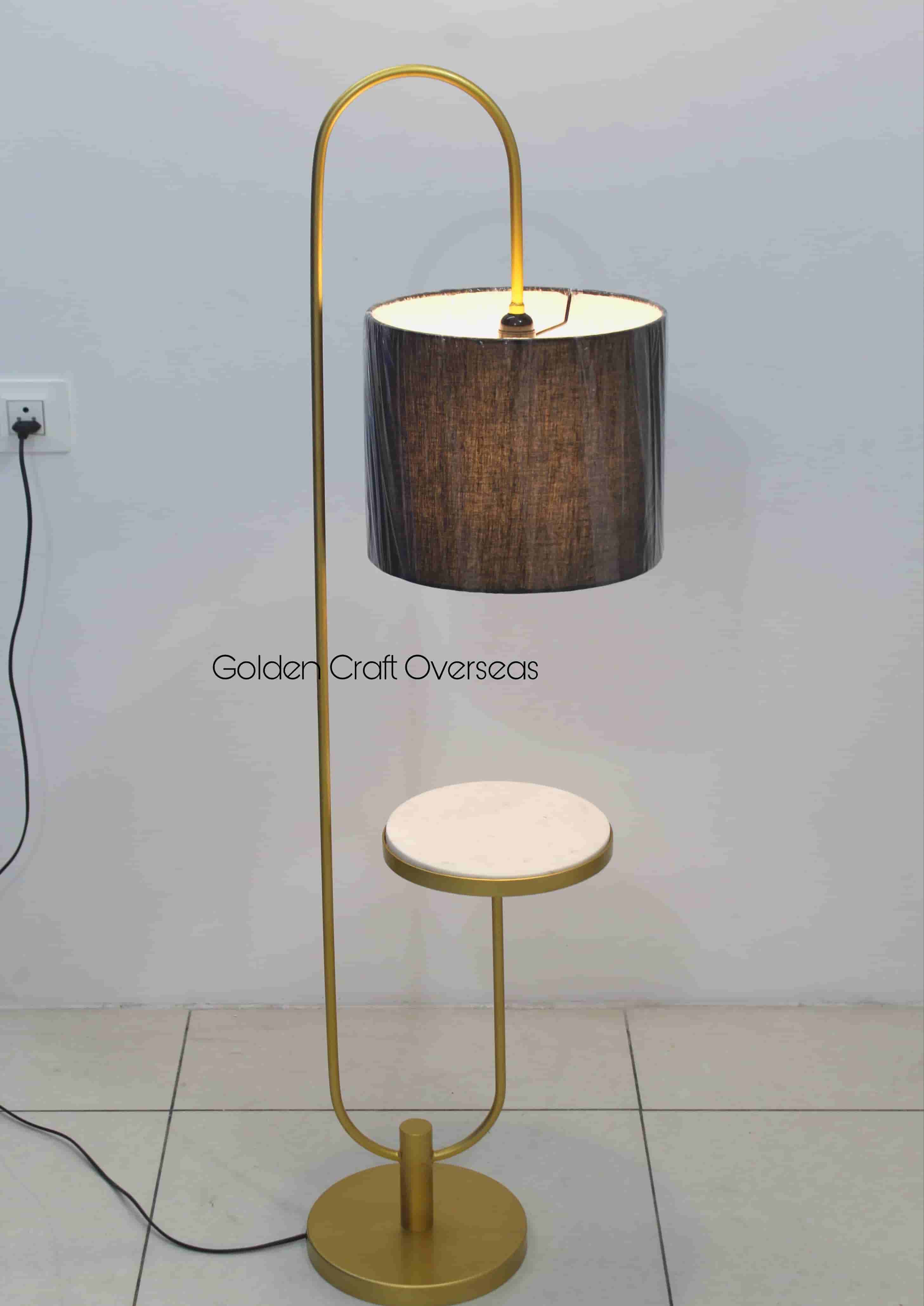 Multi Purpose Floor Lamp in iron with fabric shade golden powder coated finish