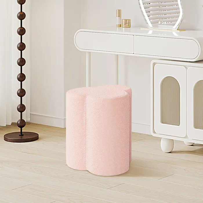 Clover-Shaped Sherpa Pouf Ottoman Stool Pink